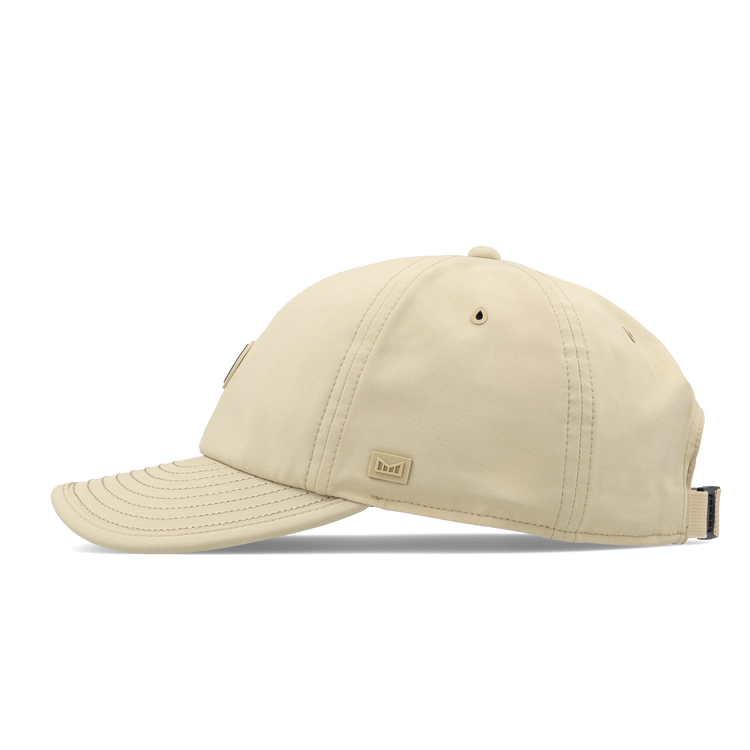 Adjustable quick-release strapback with elastic tabs for a flexible, secure, and comfortable fit.